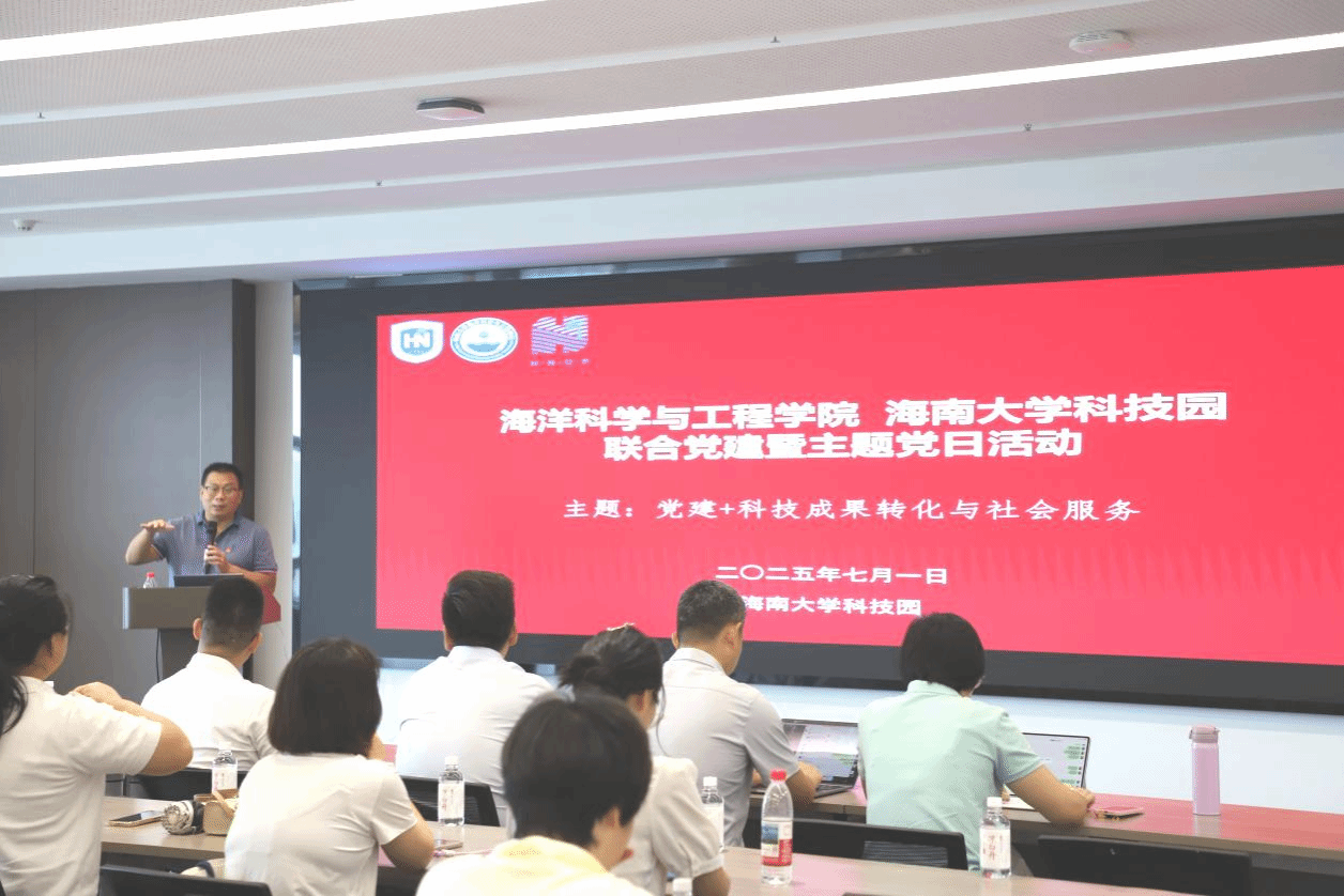 在党的第104个生日这一具有特殊意义的日子里,为进一步深化党建与业务融合,我校永利集团yl6809官网精心组织 50 余名教师党员走进海南大学科技园参观交流,与大学科技园管理中心党支部联合开展主题党日活动,深入研讨推动科技成果转化,提升社会服务能力的有效路径。活动由永利集团yl6809官网党总支书记郑中兵主持。